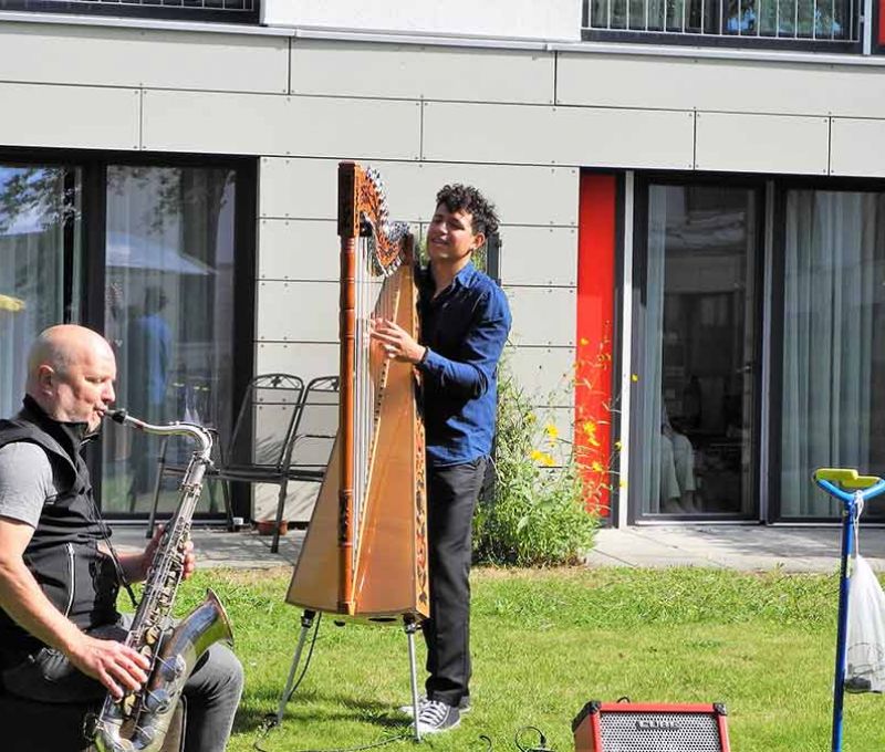 ...spielte am 23. August 2020 bei typischem Hamburger Sommerwetter abermals Johannes Köppen sein Saxophon und Alberto Sanchez seine Harfe. Beide zusammen sind ein wohlklingendes Duo. Es war ein sehr unterhaltsamer Vormittag.