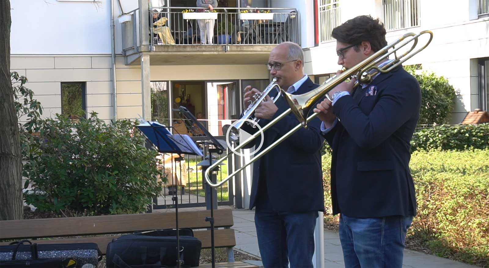 Auch in diesem Jahr sollte Ostern nicht ohne Musik und die Ansprache von Pastor Helmut Plank im Schilling-Stift begangen werden. Es musizierten: Joachim Lobe (Trompete) und Valentin Lobe (Posaune).