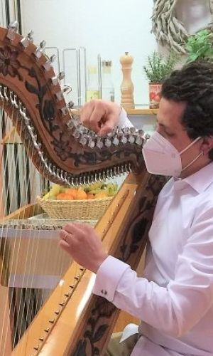 Der Freundeskreis hatte wieder einmal Alberto Sanchez mit seiner wundervoll klingenden Harfe eingeladen. Schon das Stimmen der Harfe weckte erwartungsvolle Freude bei den Bewohnerinnen und Bewohnern.