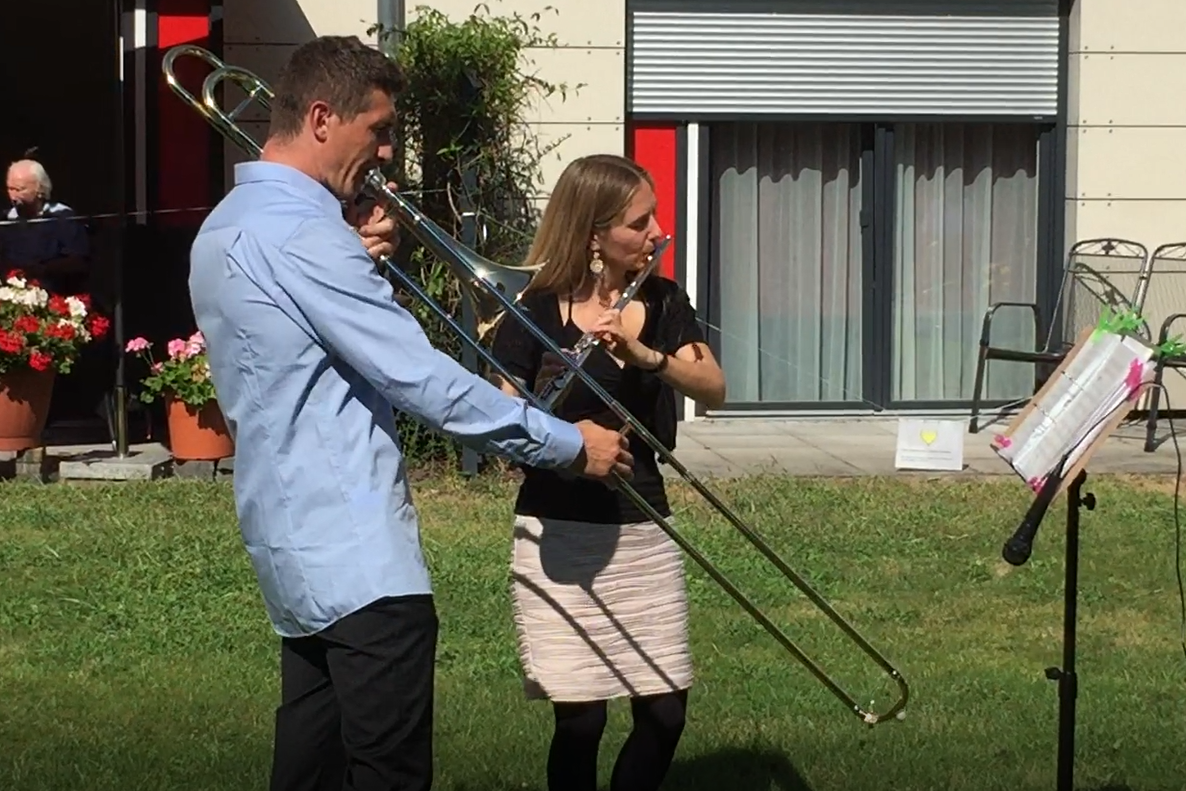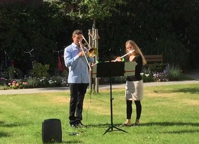 Zum zweiten Mal durften wir dem Duo "Wohlklang vereint" mit Anja Kreuzer (Querflöte) und Andrii Shparkyi (Posaune) lauschen. Frau Drews vom Freundeskreis Schillingstift e.V. begrüßte die beiden Musiker und dann genossen wir die musikalische Zeitreise mit den beiden wunderbaren Musikern! Ein Genuss für alle...