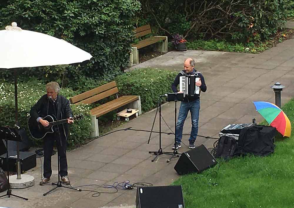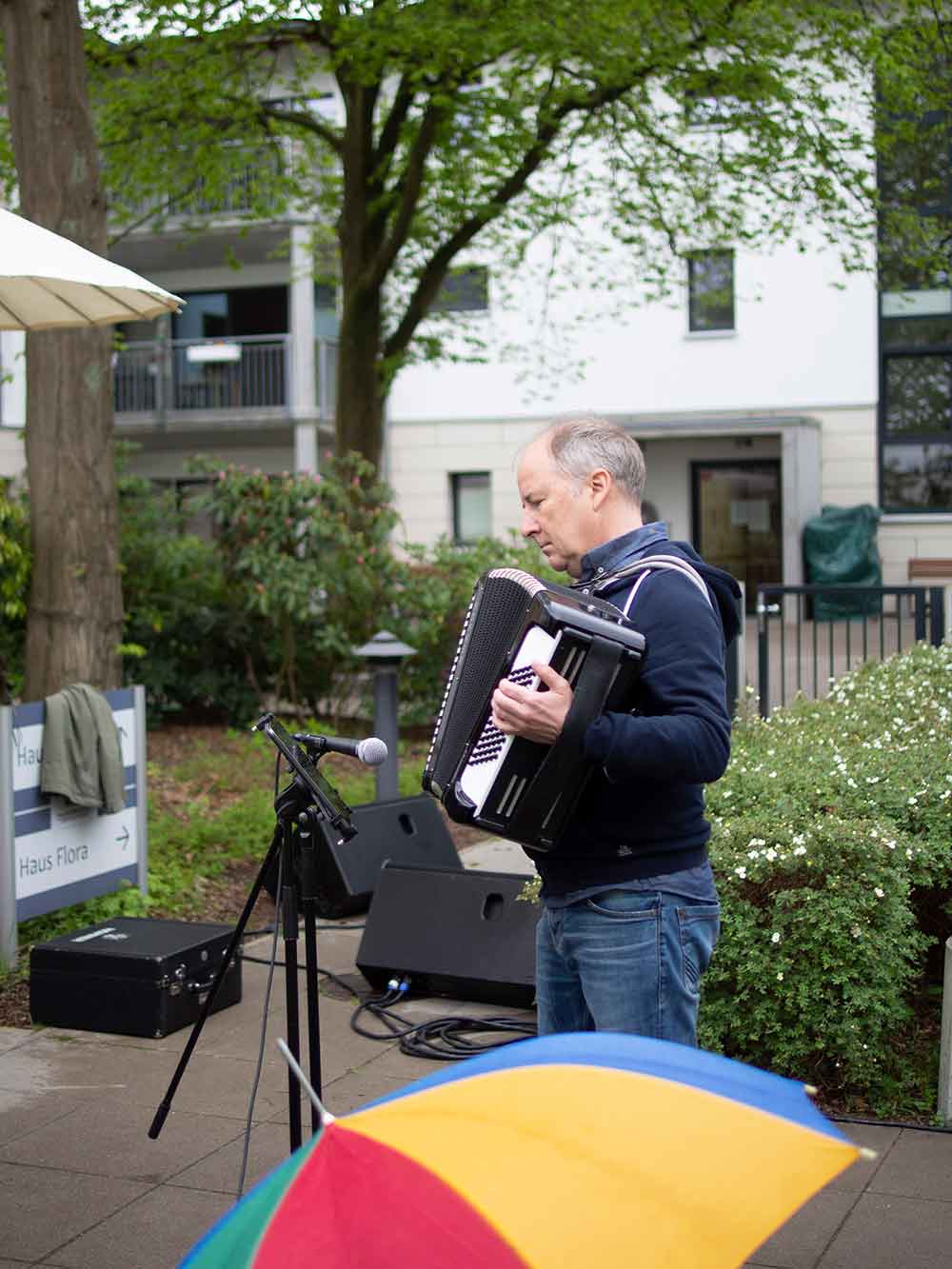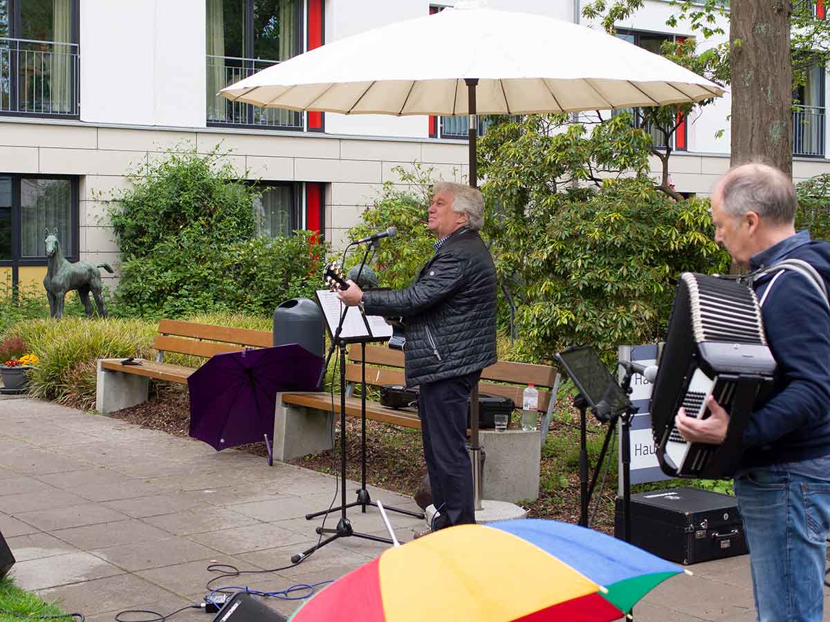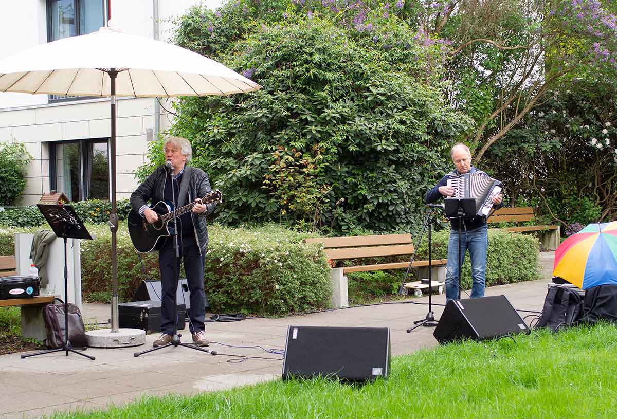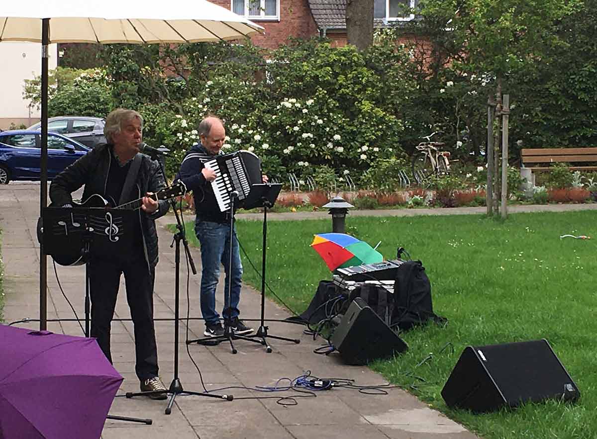 Am Sonntag, 3. Mai hatten wir besondere Ehrengäste bei uns: Rolf Zuckowski und Michael Gundlach (Akkordeon) brachten uns Lieder zum Mitsingen wie "An de Eck steiht 'n Jung mit'n Tüddelband". Zwischendurch erzählte Rolf Zuckowski von seinen Eltern und Großeltern, die untereinander noch Platt schnackten – mit den Kindern aber Hochdütsch, damit aus ihnen "mal was werde". Wir danken den beiden Künstlern sehr herzlich für dieses Highlight!