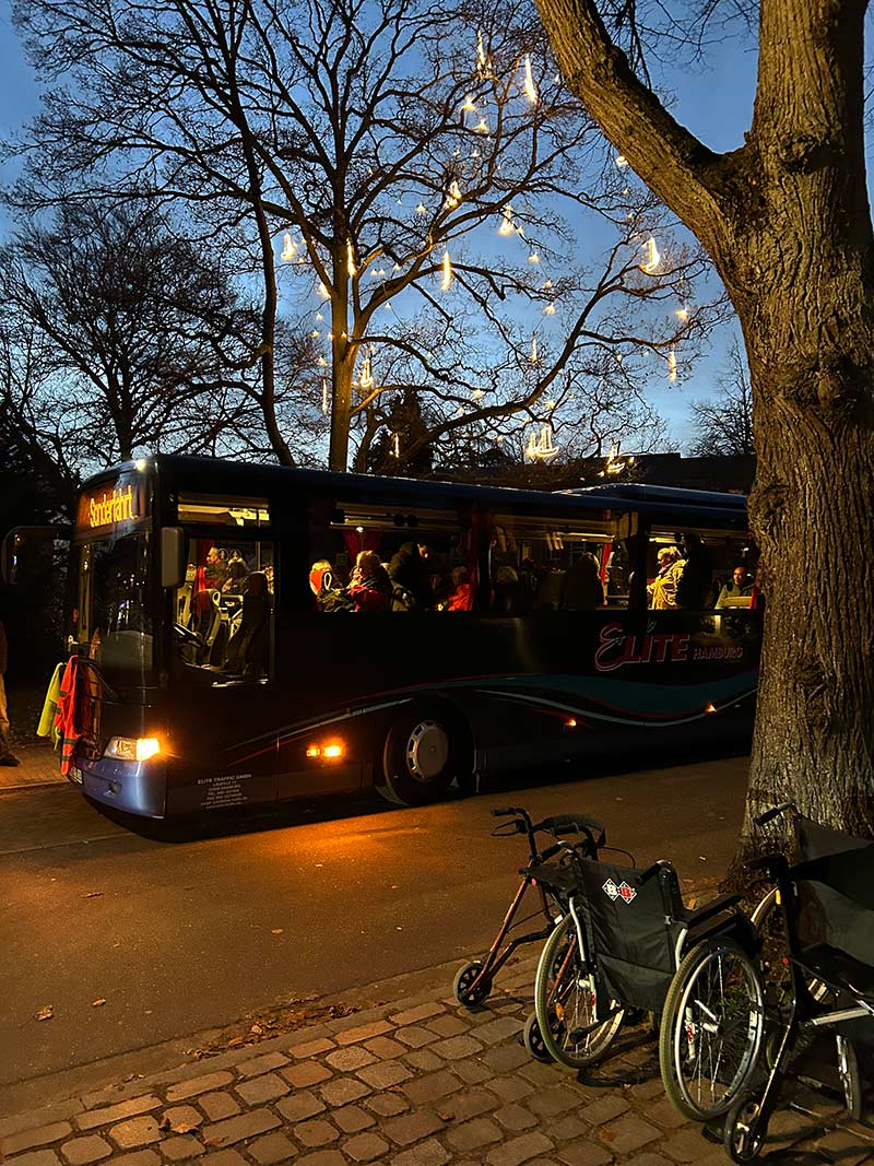 Dieser Einladung waren zahlreiche Bewohnerinnen und Bewohner gefolgt, von denen den meisten die Anfahrt mit wieder eigens vom Freundeskreis angemieteten Bus ermöglicht worden war, dabei auch viele im Rollstuhl.