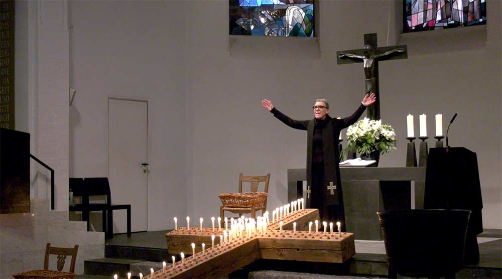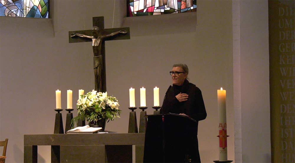 Unsere Seelsorgerin Cornelia Engler hielt eine bewegende Predigt, in der sie anrührend die tröstliche Gewissheit vom Ewigen Leben anhand Jesu Gleichnis von den klugen und den törichten Jungfrauen vermittelte.