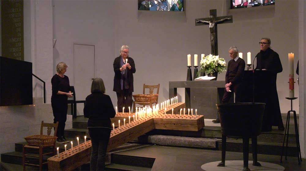 Nach der anschließenden Verlesung der verstorbenen Bewohnerinnen und Bewohner, während der für jede und jeden eine Kerze entzündet und in das große Lichterkreuz gesetzt werde, hatten viele Mitarbeitenden und Freunde des Stifts das Angebot genutzt, eine Kerze auch für ihnen nahestehende Menschen setzen zu lassen.