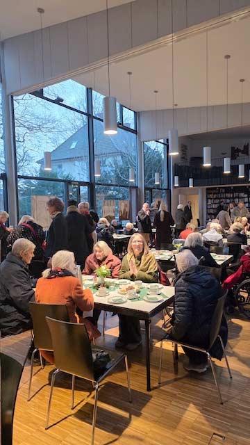 Anschließend an den Gottesdienst hatte der Vorstand in den großen Saal im Gemeindehaus zu Kaffee und Kuchen eingeladen; die Tische waren liebevoll eingedeckt und geschmückt, und so war das lebendige Miteinander eigentlich wieder viel zu kurz.