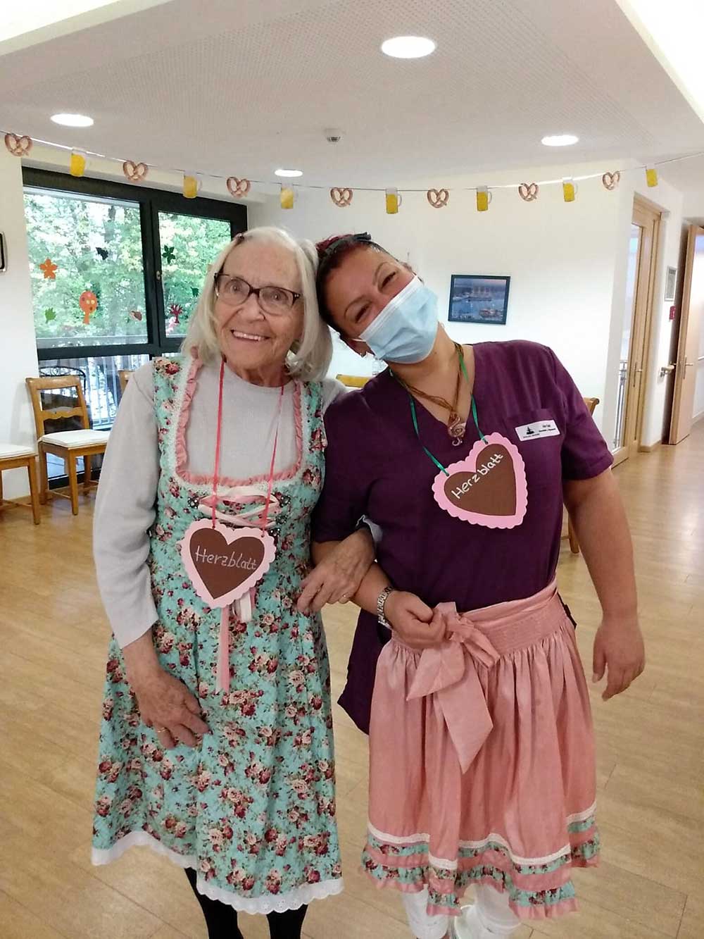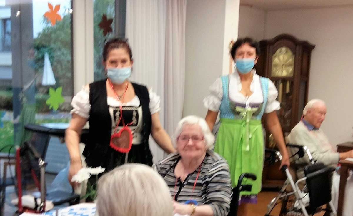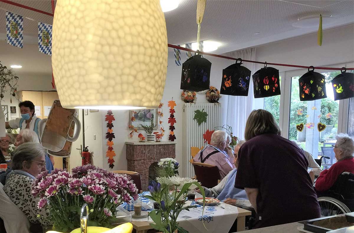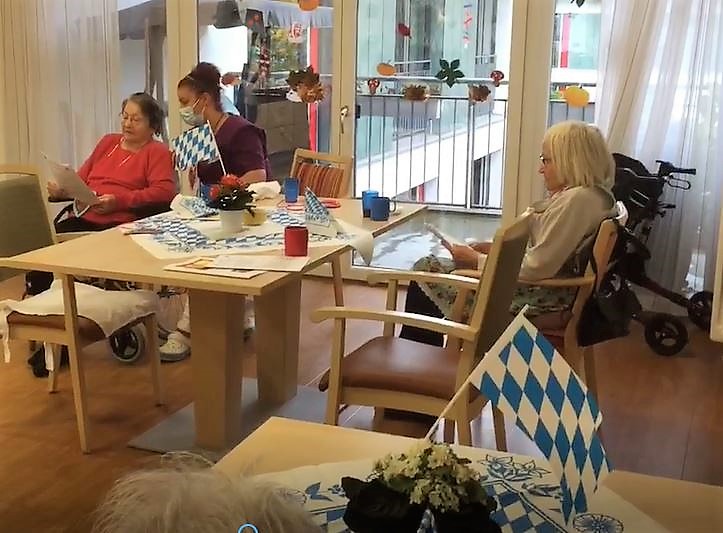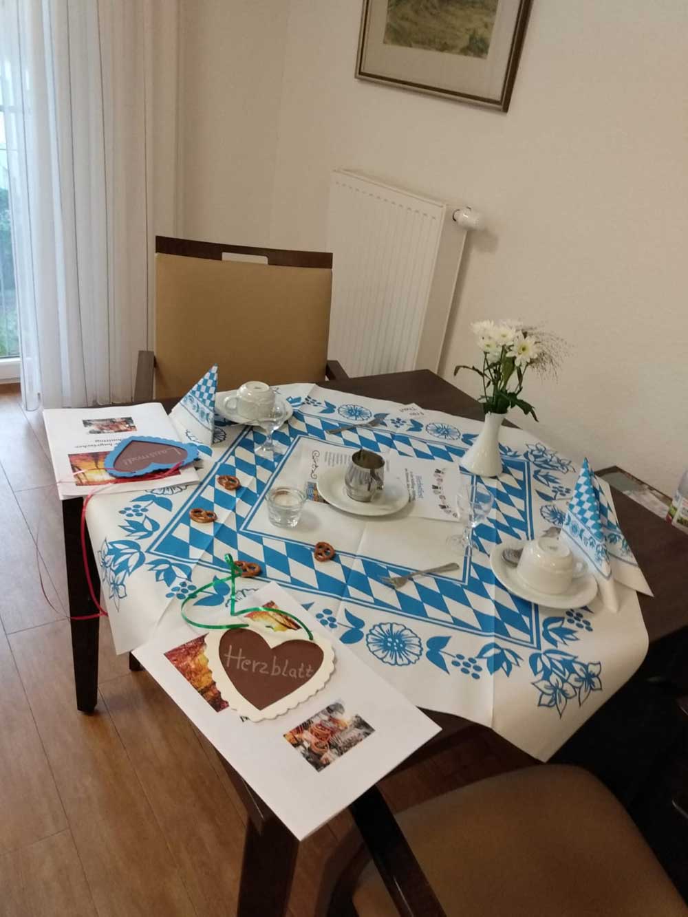 Oktoberfest - das Motto am 21. Oktober war in der bayrischen Dekoration (blau-weiße Girlanden mit Maßkrügen Bier und Brezeln), der Musik des Musikerduos "Balalayka", dem typisch bayrischen Essen und sogar in der Kleidung erkennbar - einige unserer Mitarbeiterinnen trugen ein Dirndl! Für alle ein schöner Nachmittag.