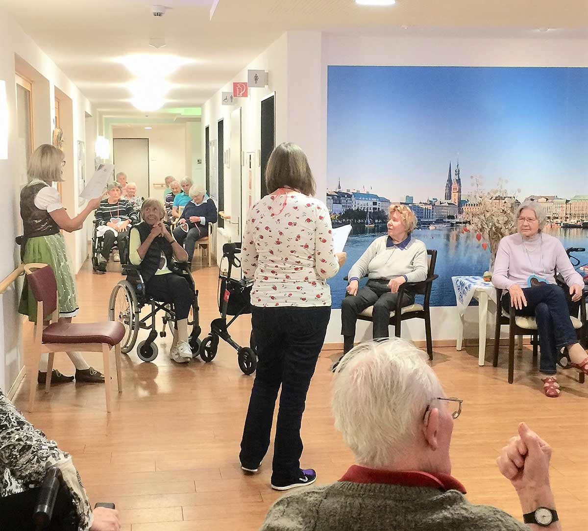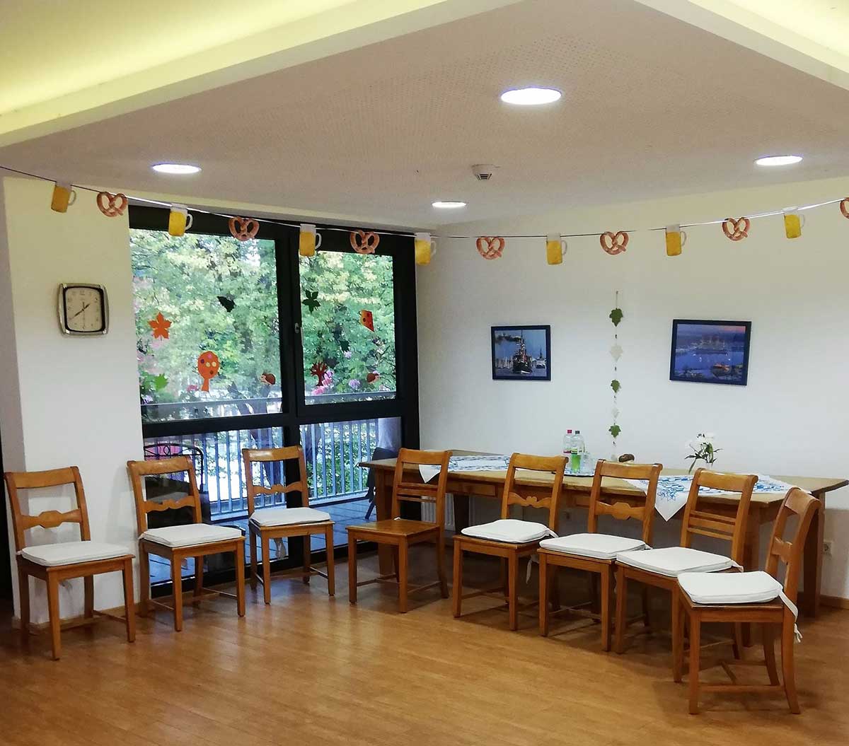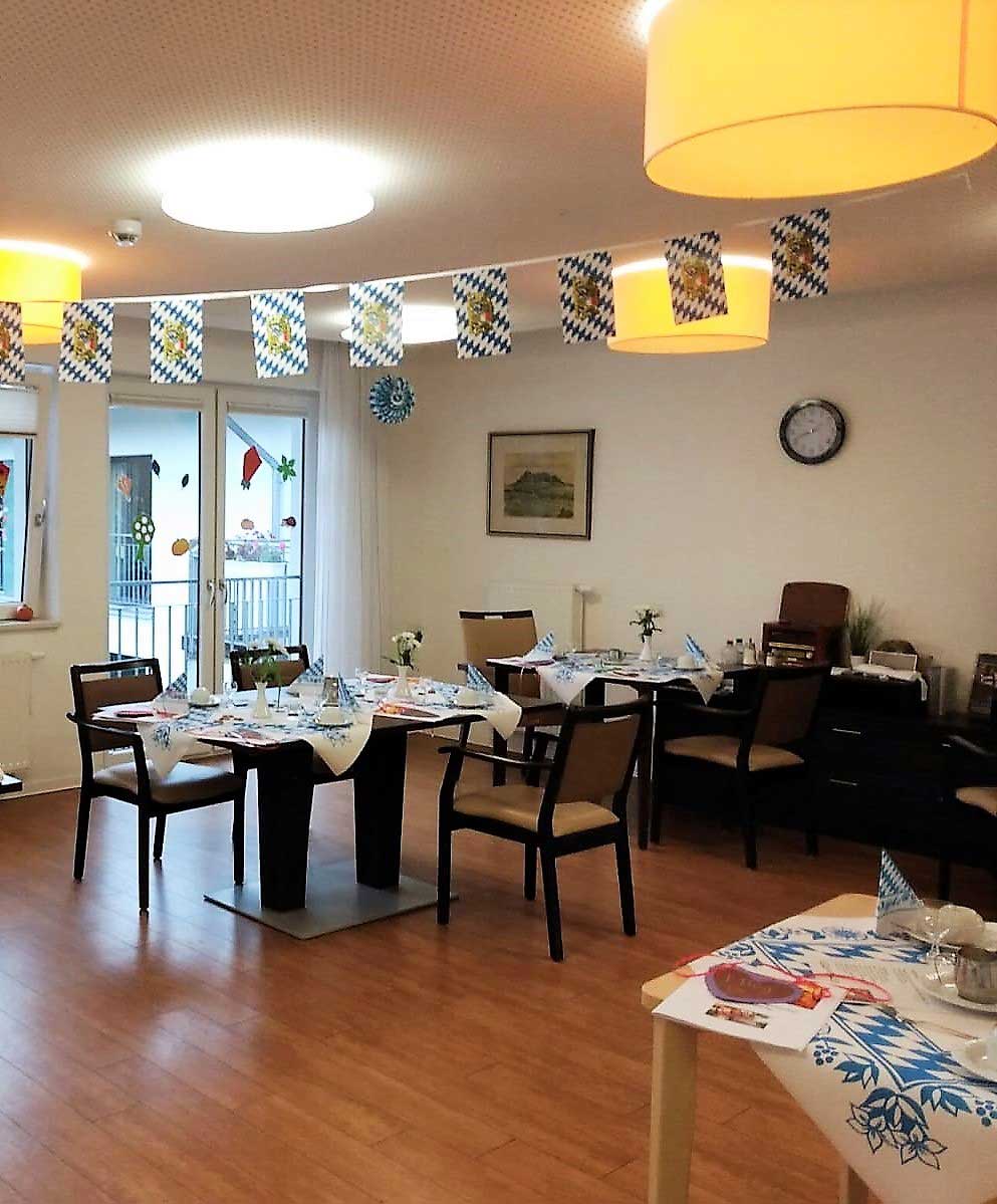 Oktoberfest - das Motto am 21. Oktober war in der bayrischen Dekoration (blau-weiße Girlanden mit Maßkrügen Bier und Brezeln), der Musik des Musikerduos "Balalayka", dem typisch bayrischen Essen und sogar in der Kleidung erkennbar - einige unserer Mitarbeiterinnen trugen ein Dirndl! Für alle ein schöner Nachmittag.
