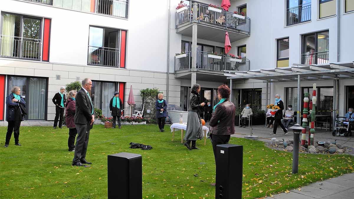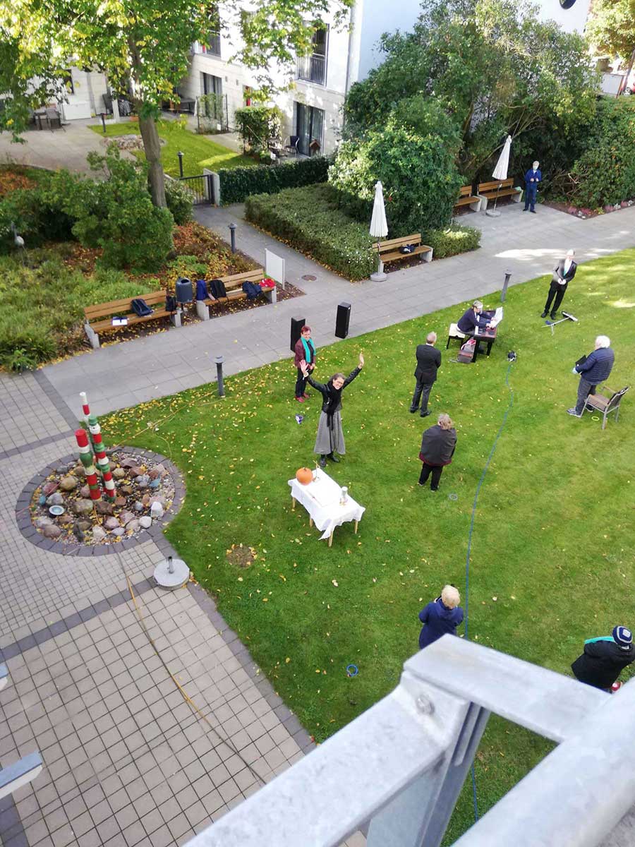 Stefanie Hempel hat am 4. Oktober mit warmherzigen Worten den Gottesdienst gestaltet. Die musikalische Begleitung übernahm die vom Freundeskreis eingeladene Kantorei Schenefeld unter der Leitung von Jonathan Gable. Mit großem Abstand und einem frischen Wind wurde im Freien wunderbar gesungen und Erntedank gefeiert. Das schwungvolle Lied Siyahamba aus Afrika stimmte uns alle auf einen fröhlichen Sonntag ein.