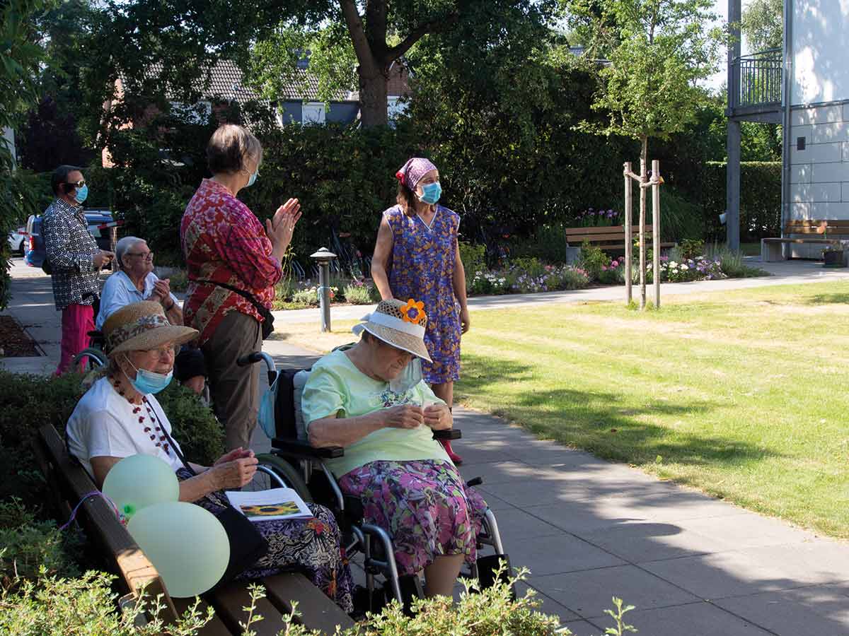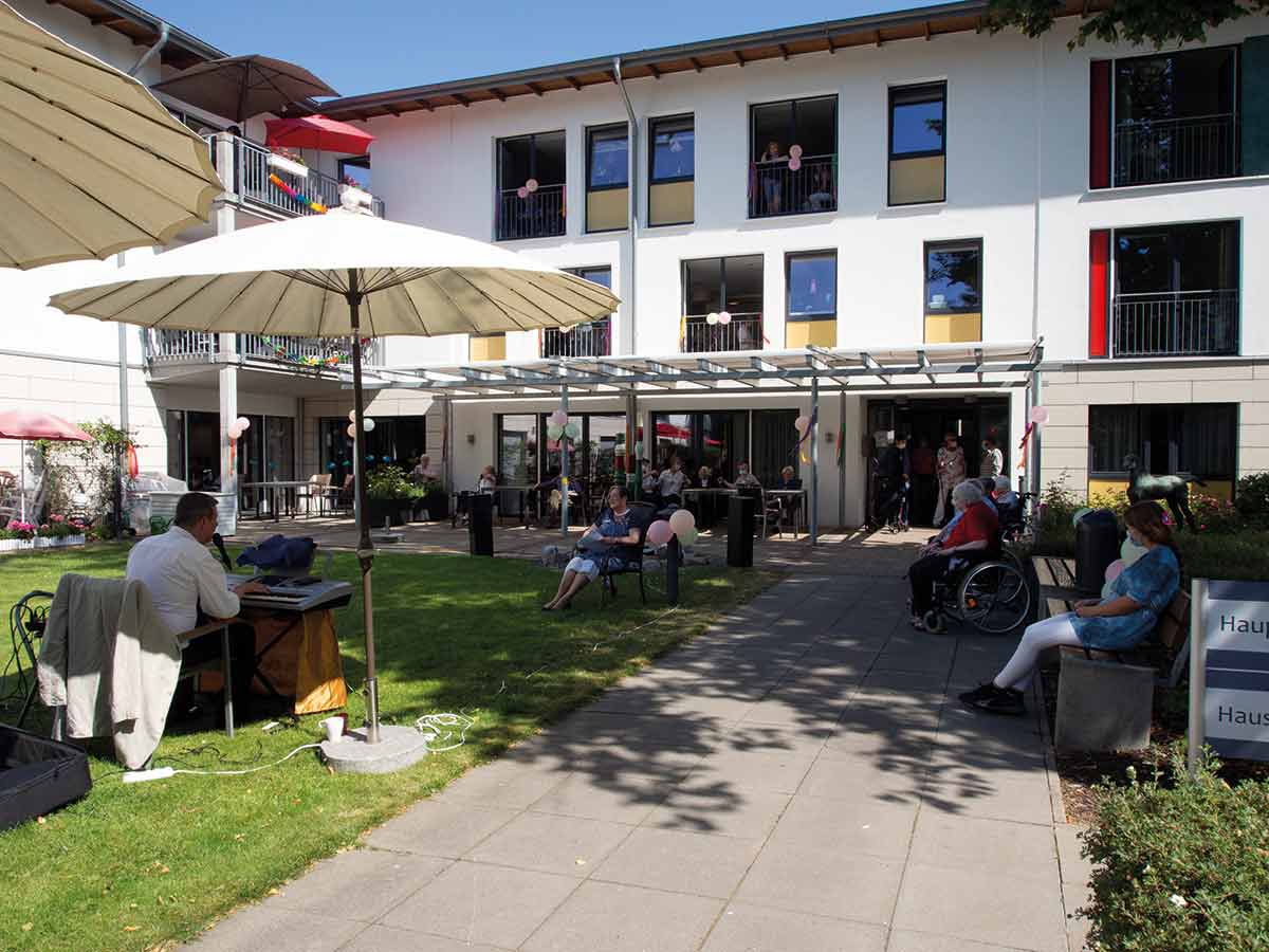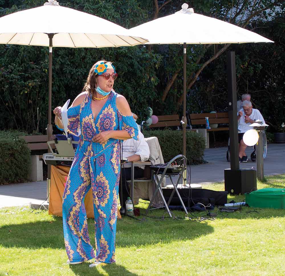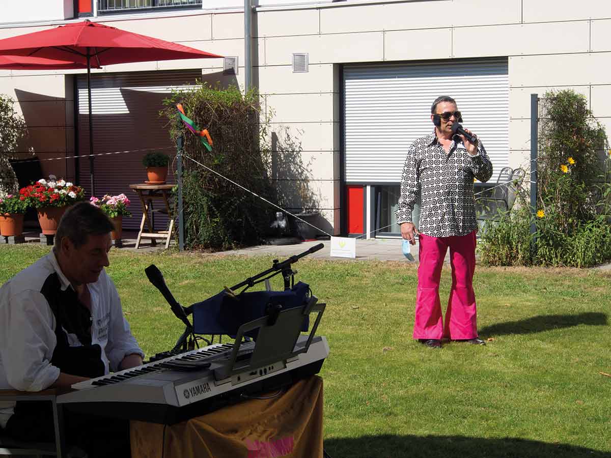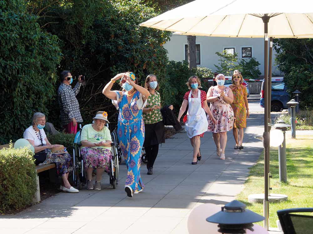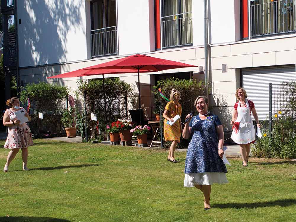 Sommerhimmel, Sommerstimmung, schwungvolle Musik für alle und als Höhepunkt: Mitarbeitende auf dem Laufsteg. Ohne Scheu, überzeugend in der Themen-Kleidung aus den 60er Jahren. Sehen Sie selbst. Ein buntes Programm für unsere Bewohner*innen und versorgt mit Leckereien und vor allem mit großer Aufmerksamkeit der Mitarbeiterschaft. In jeder Hinsicht „erwärmend“!